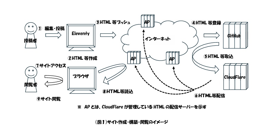 サイト作成・構築・閲覧のイメージを下記の「(図1)サイト作成・構築・閲覧のイメージ」に示します。